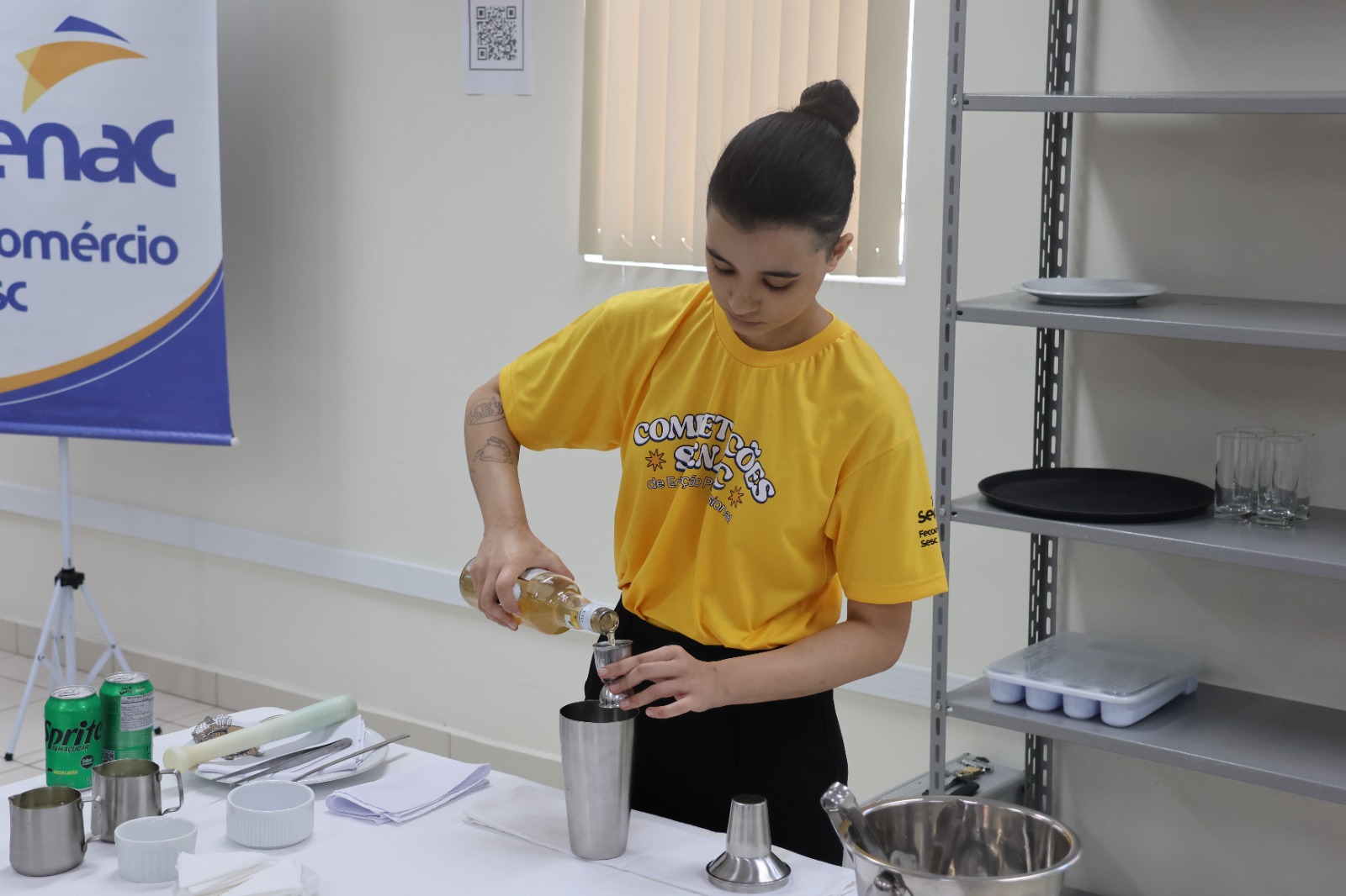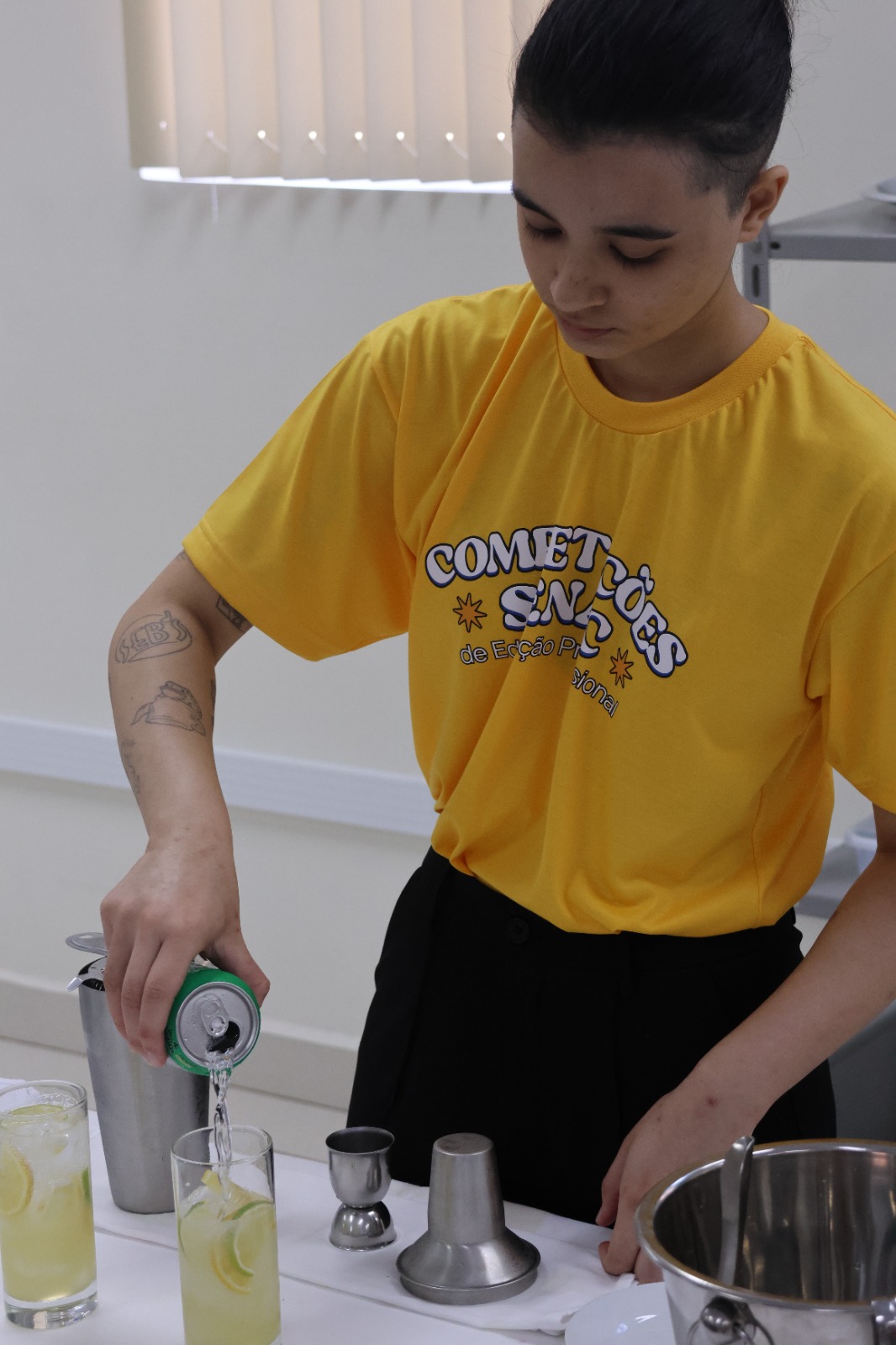 A competidora explica que são três os pilares principais da ocupação aos quais precisa ficar atenta: “A comunicação clara, não só com os clientes, mas com a cozinha ou os demais setores, as habilidades práticas de preparação e manuseio dos diferentes utensílios e máquinas, e o conhecimento técnico sobre produtos e processos, para que a gente consiga passar esse conhecimento de forma clara para os clientes”.