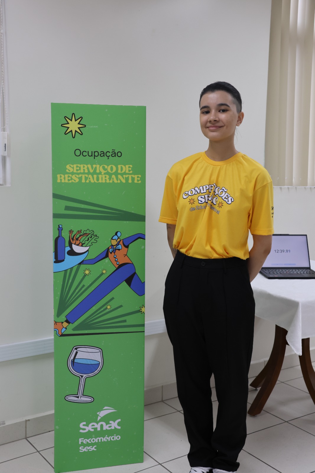 Natural de Blumenau, Emanoela Rodrigues Erthal começou seu caminho dentro da própria faculdade, durante uma disciplina que abordava práticas de atendimento. Segundo a competidora, a ocupação de Serviço de Restaurante é ampla e exige múltiplas habilidades: “Fazemos atendimento em restaurantes e estabelecimentos de bebidas. O competidor foca na recepção, comunicação com os clientes, acomodação, explicação do serviço ou do cardápio e em técnicas e conhecimentos que precisam ser repassados, seja dentro ou fora do atendimento.”