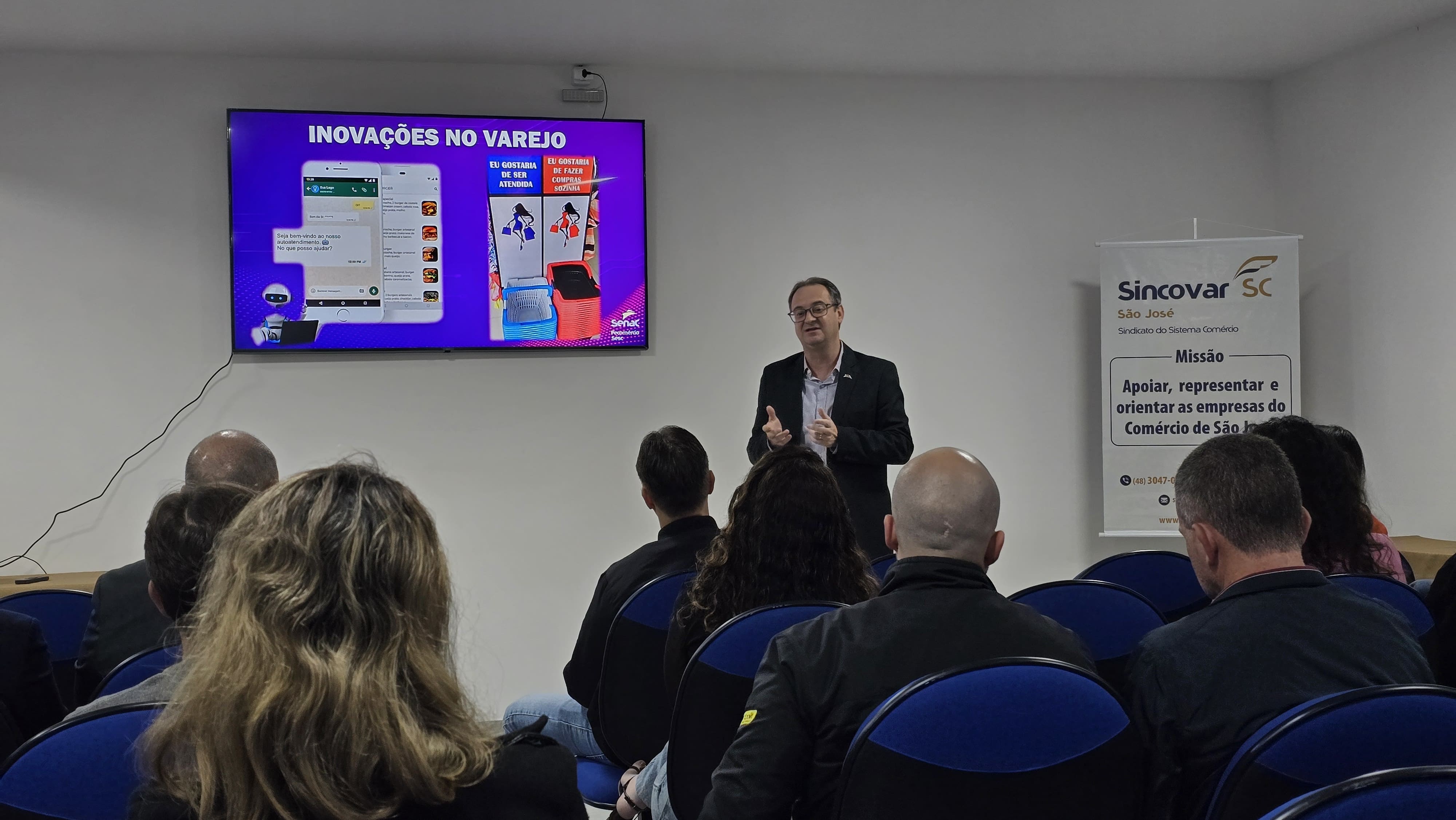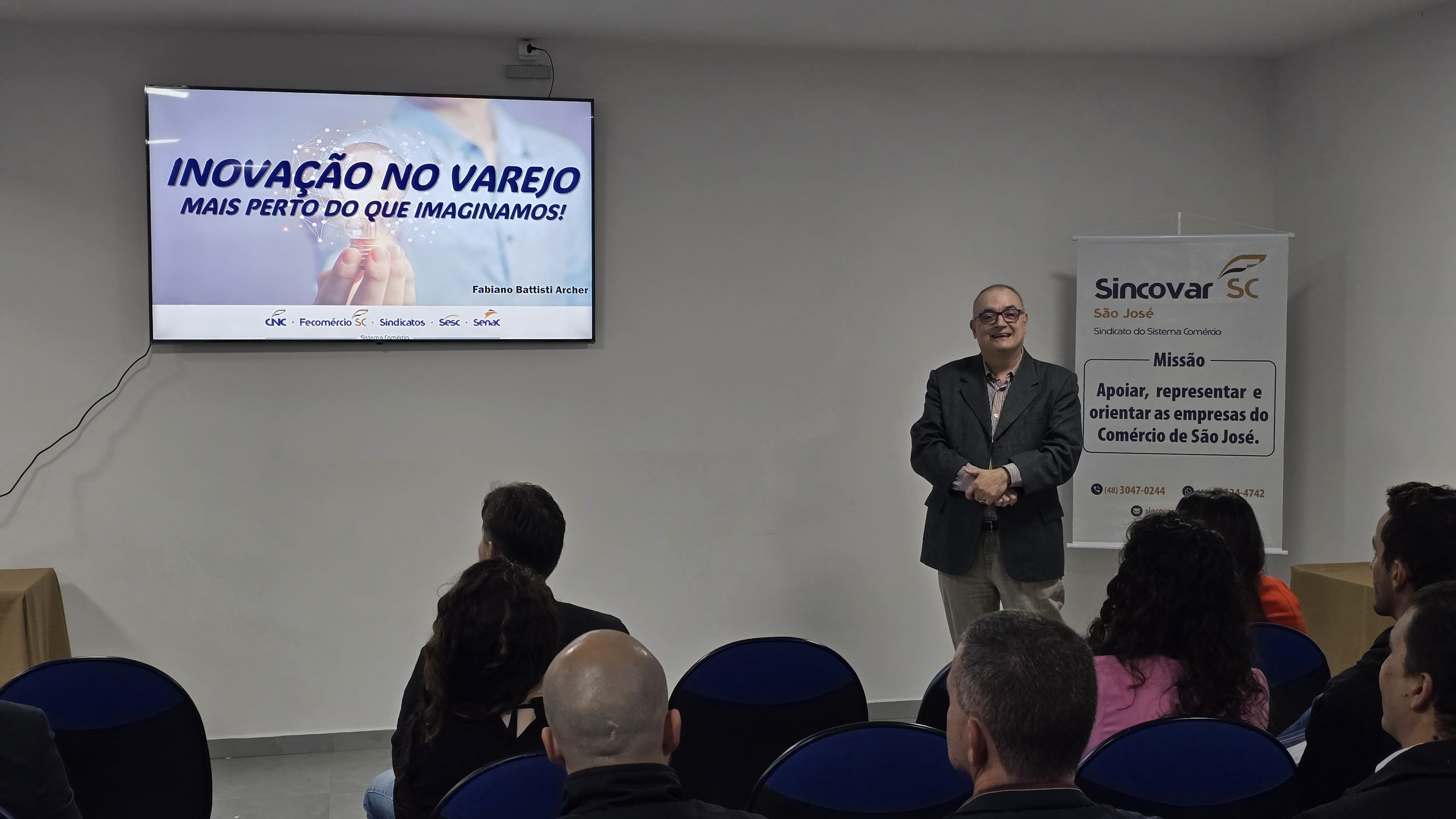 Na noite dessa terça-feira, 9, o diretor regional do Senac em Santa Catarina, Fabiano Batistti Archer, esteve no auditório do Sindicato do Comércio Varejista, Sincovar, em Barreiros, São José, com a palestra Inovação no Varejo: mais perto do que imaginamos. O evento reuniu empresários e funcionários de empresas locais. A palestra abordou temas como tendências do varejo, inovação e tecnologia e como esses conceitos podem ser aplicados no dia a dia dos negócios.