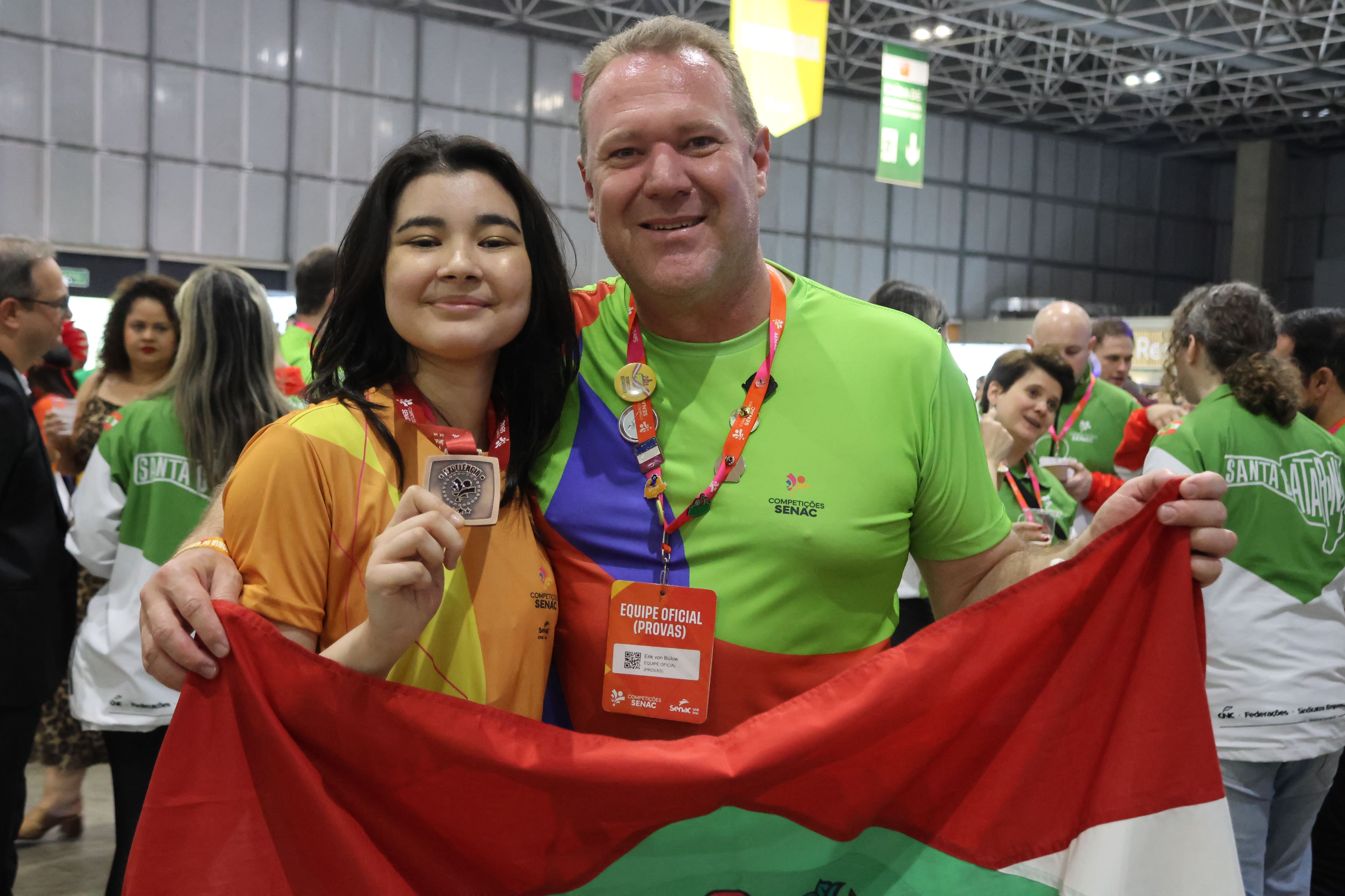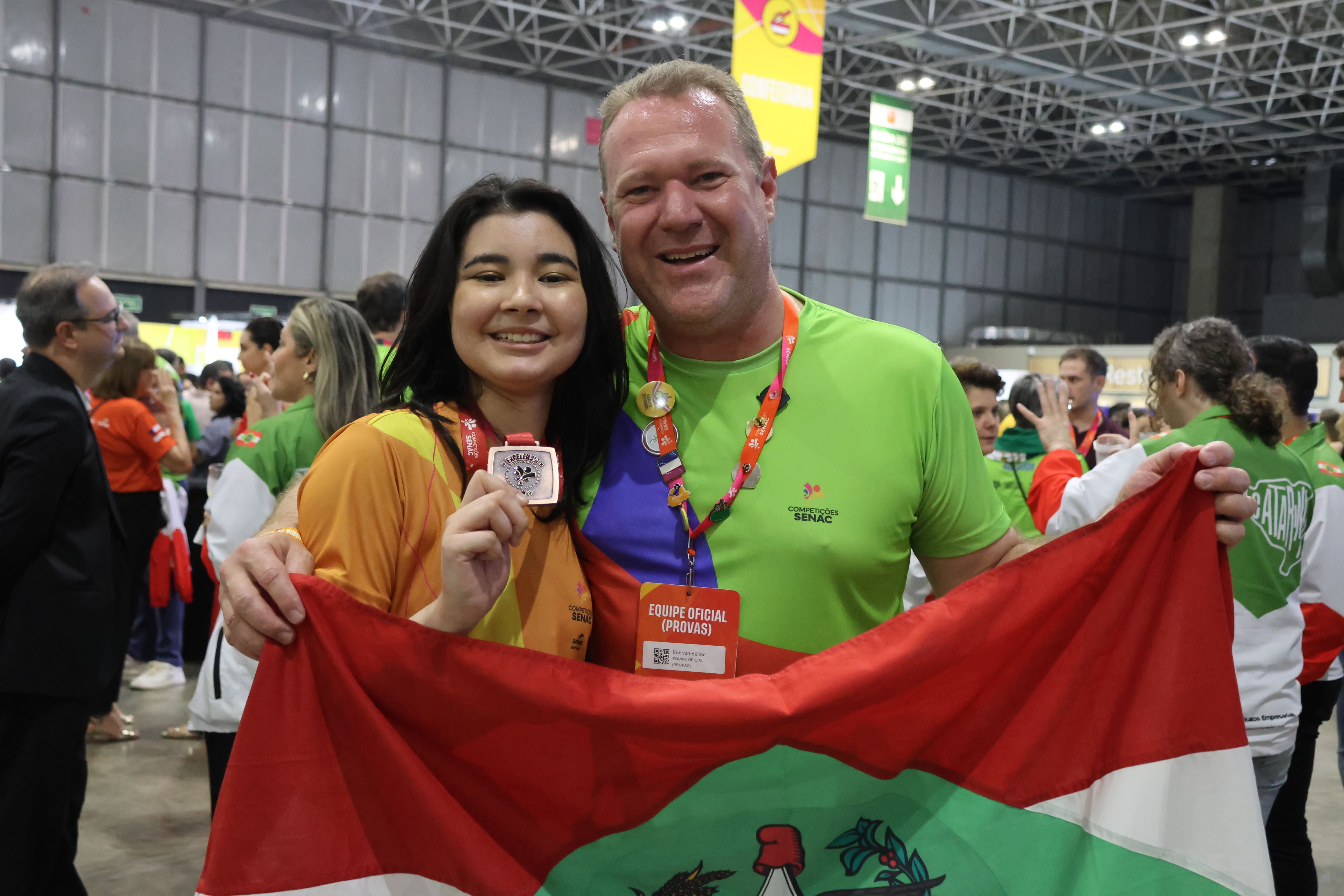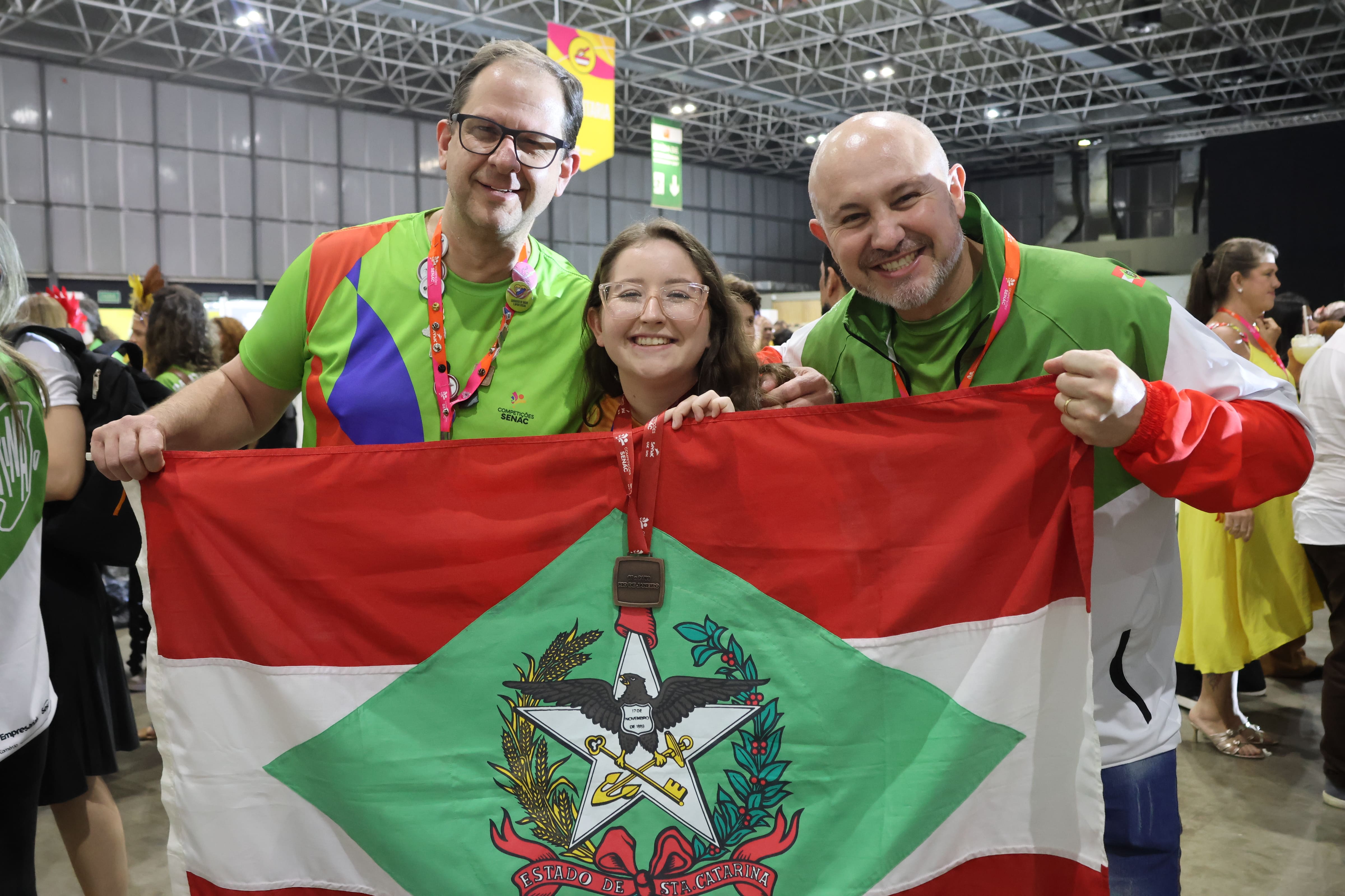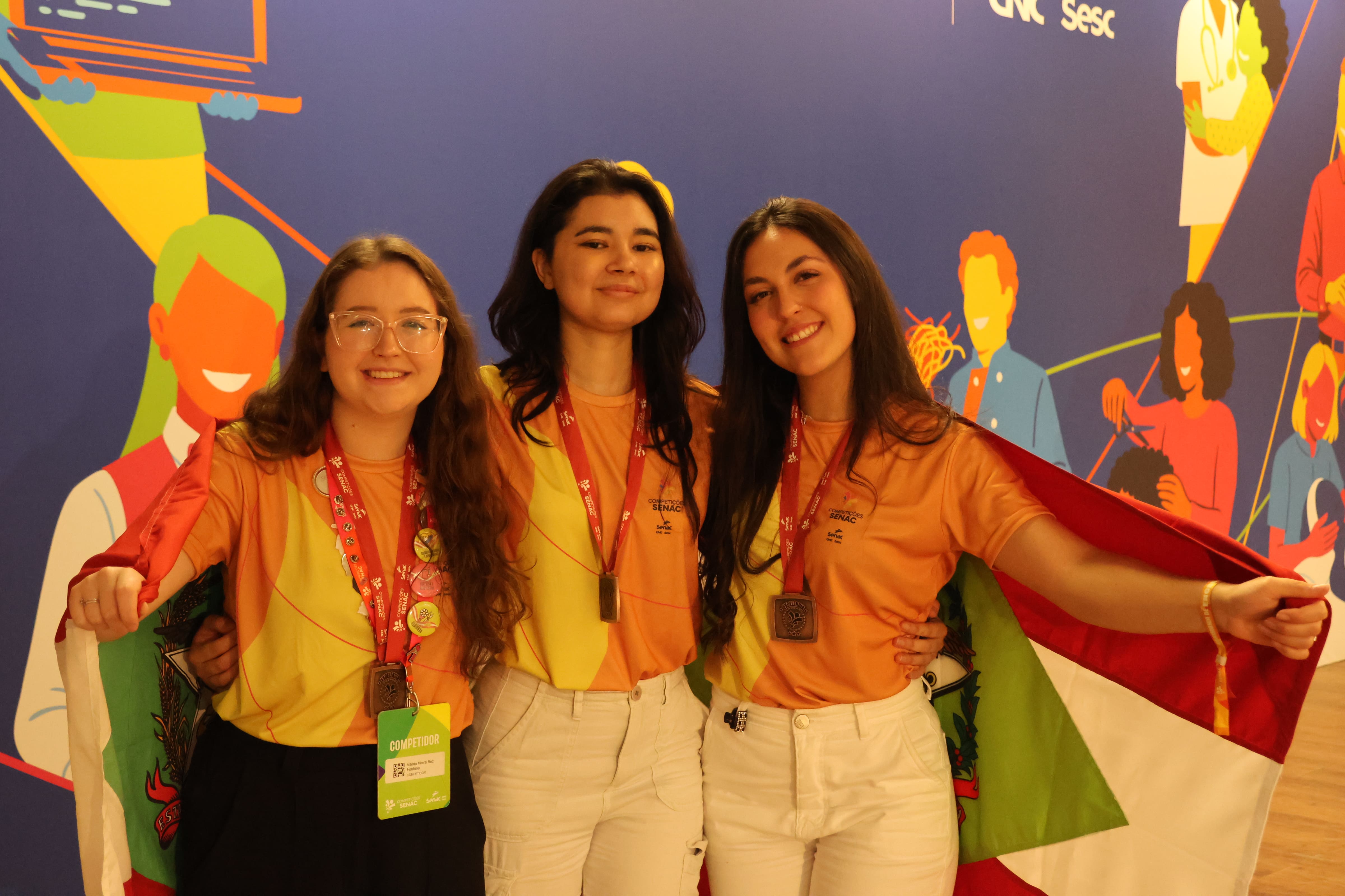 Emanoela, João Victor, Larissa, Maria Eduarda, Mariana e Vitória são os nomes dos jovens que após meses de preparo, carregaram a responsabilidade de representar Santa Catarina na última quinta, sexta e sábado nas Competições Senac 2025, no RioCentro, Rio de Janeiro. Muita energia, empenho e emoção tomou conta dos dias de prova, com cada entrega finalizada. Vitória, Emanoela e Mariana, das ocupações Cozinha, Serviço de Restaurante e Estética e Bem-estar trouxeram para Criciúma, Blumenau e Porto União três medalhas de Excelência, conferidas aos alunos que pontuaram acima da média.