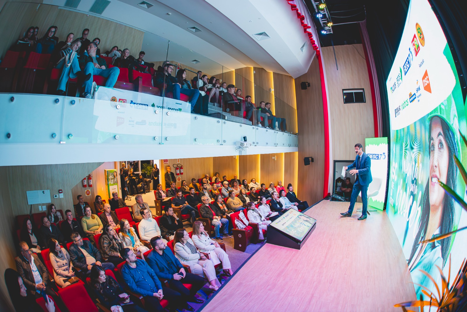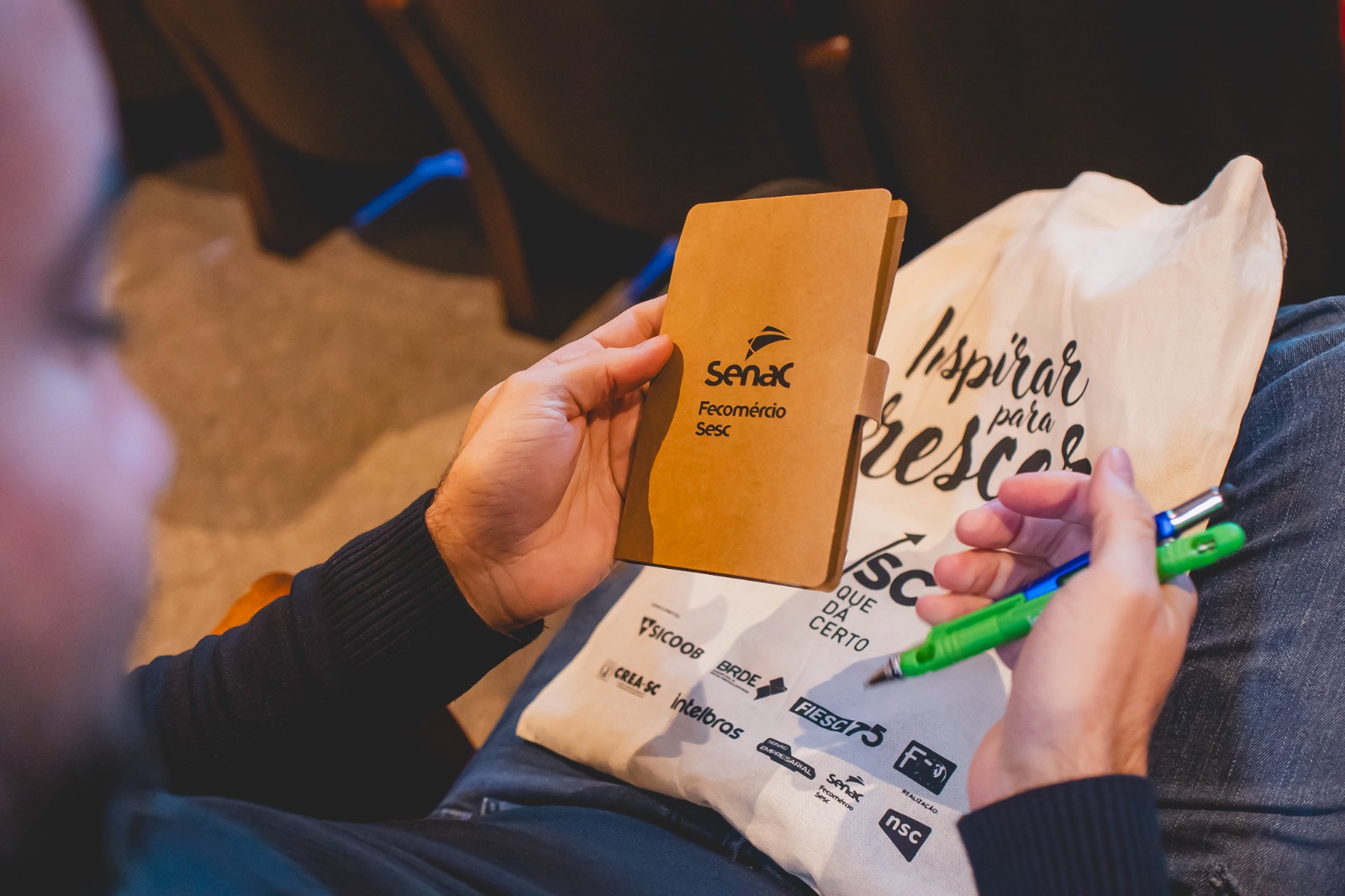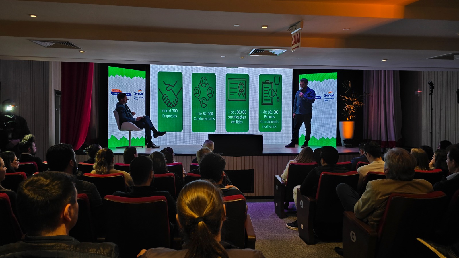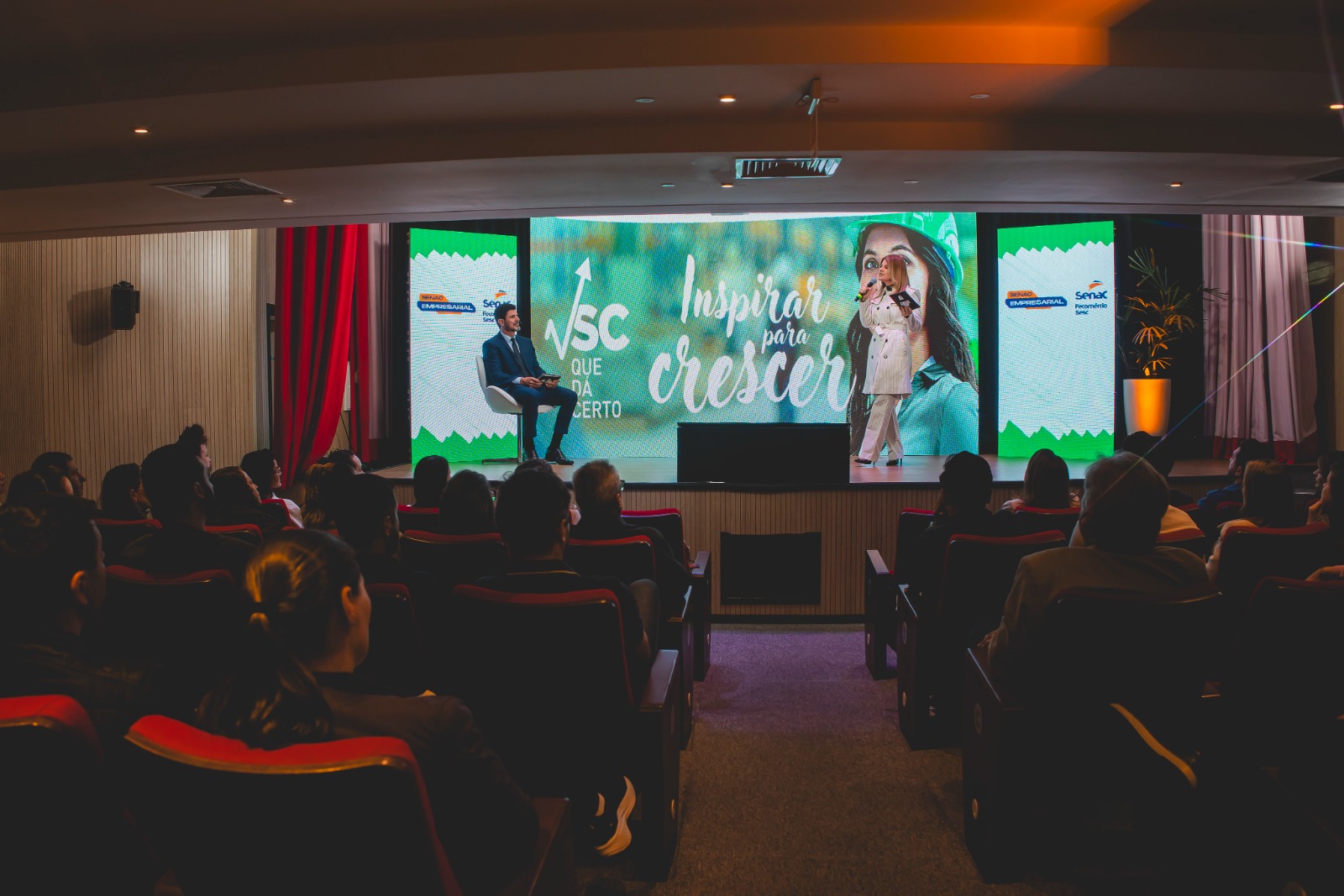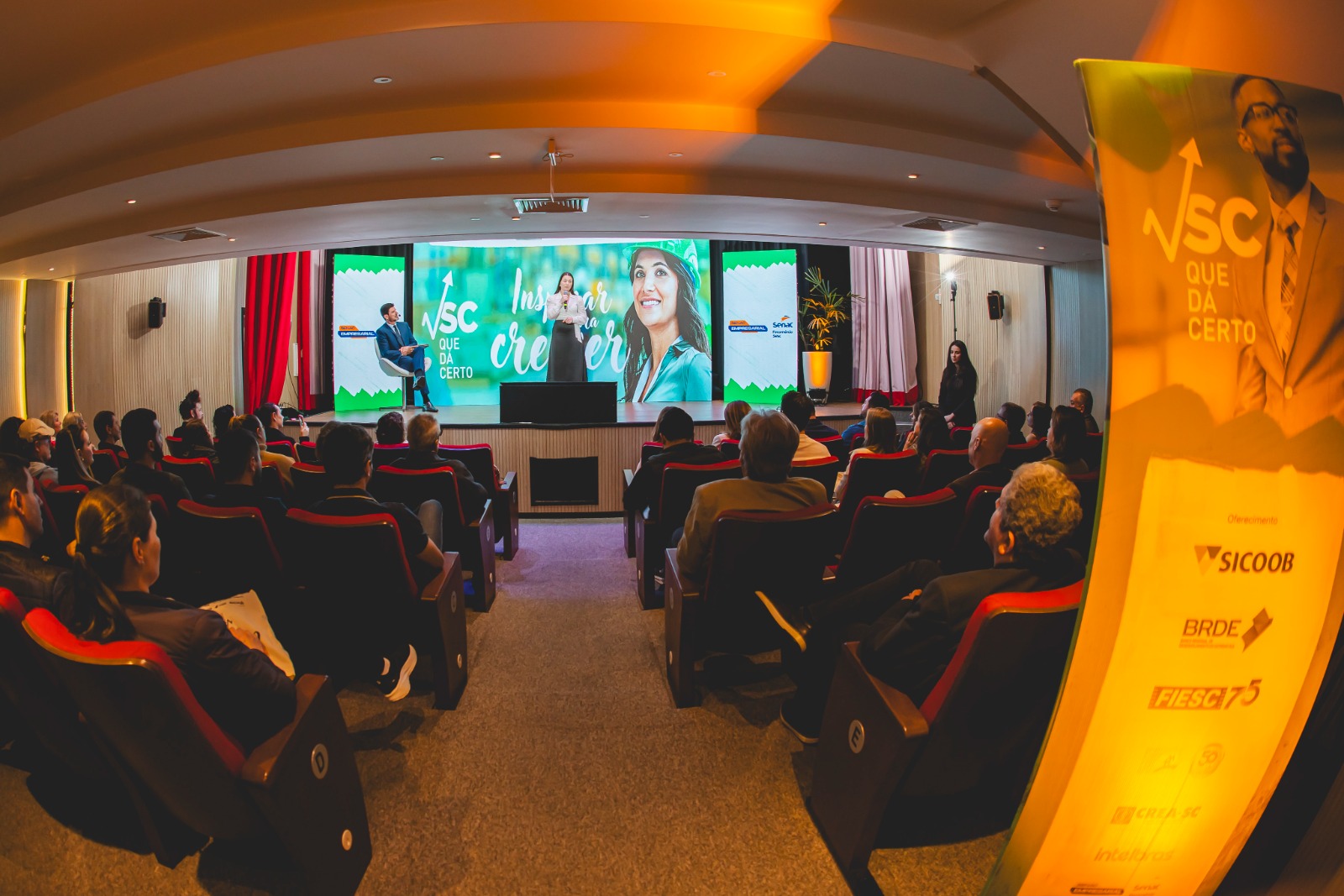 Divulgação da plataforma Senac Empresas no terceiro encontro do SC que dá Certo, em Itapema. Empresas interessadas no acesso total dos cursos devem se cadastrar em Seja um parceiro, em empresas.senac.br